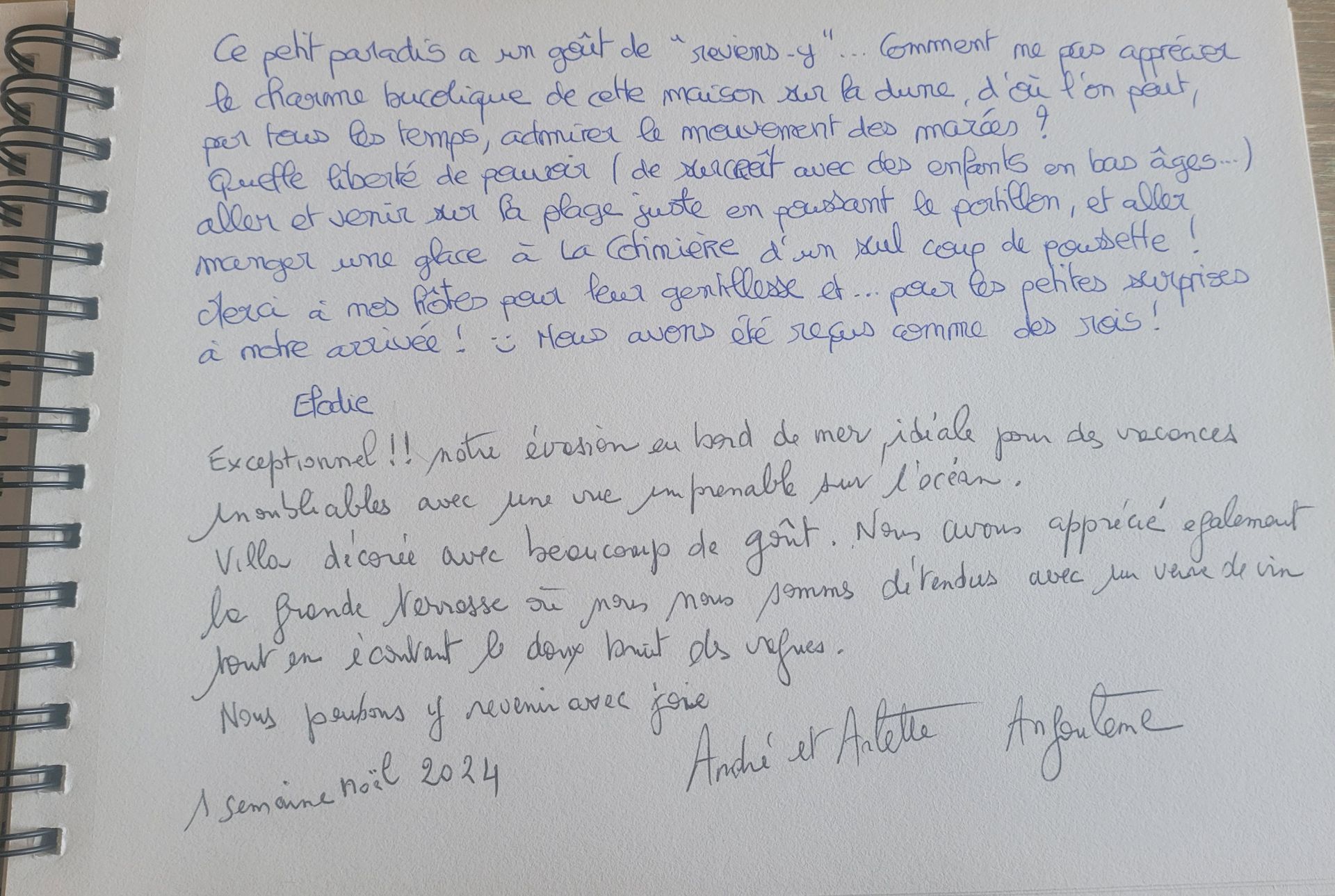 Nous avons adoré nous réveiller chaque matin avec le bruit des vagues et partager nos repas face à la mer.